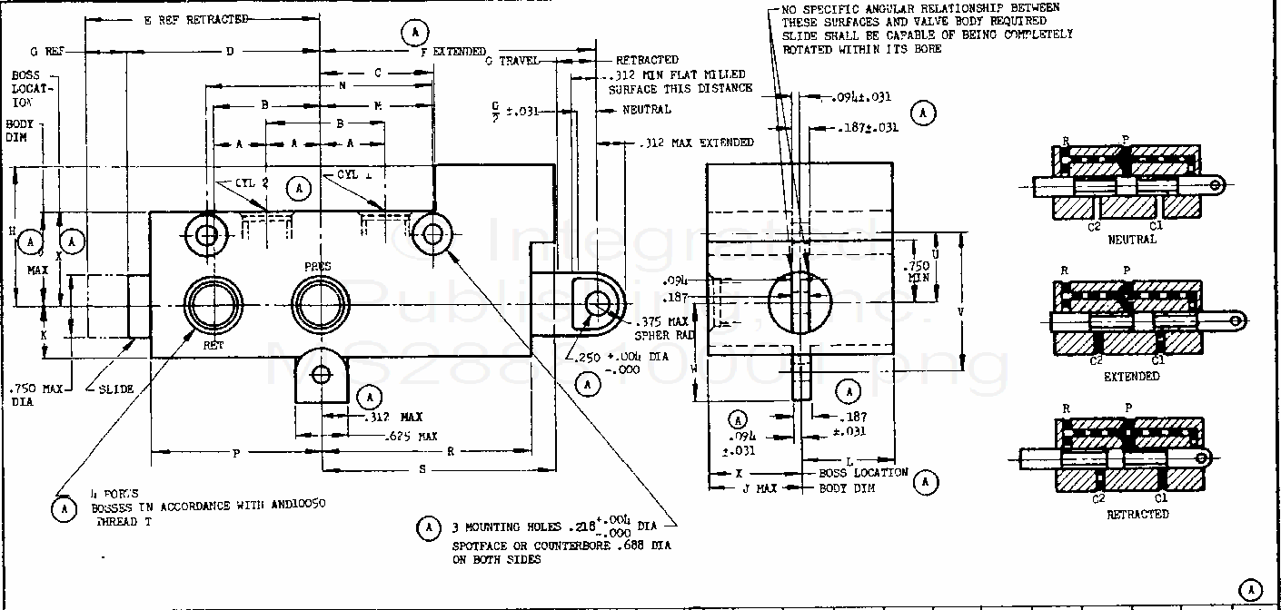 MS28881 Valve - Hydraulic, Directional Control, Slide Selector 4 Way, 3000 Psi